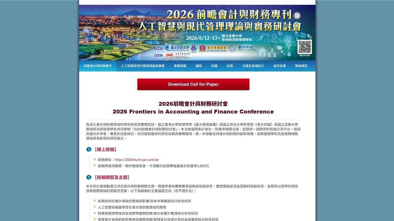 2026前瞻會計與財務專刊暨AI與現代管理理論與實務研討會